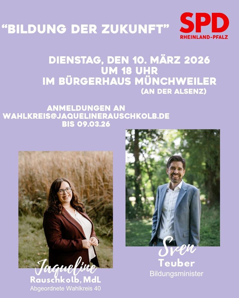 Bildung ist ein zentrales Thema in unserer Gesellschaft und für unsere Demokratie! Deswegen freuen wir uns als SPD-Ortsverein Münchweiler den Bildungsminister Sven Teuber am Dienstag in Münchweiler zu begrüßen!