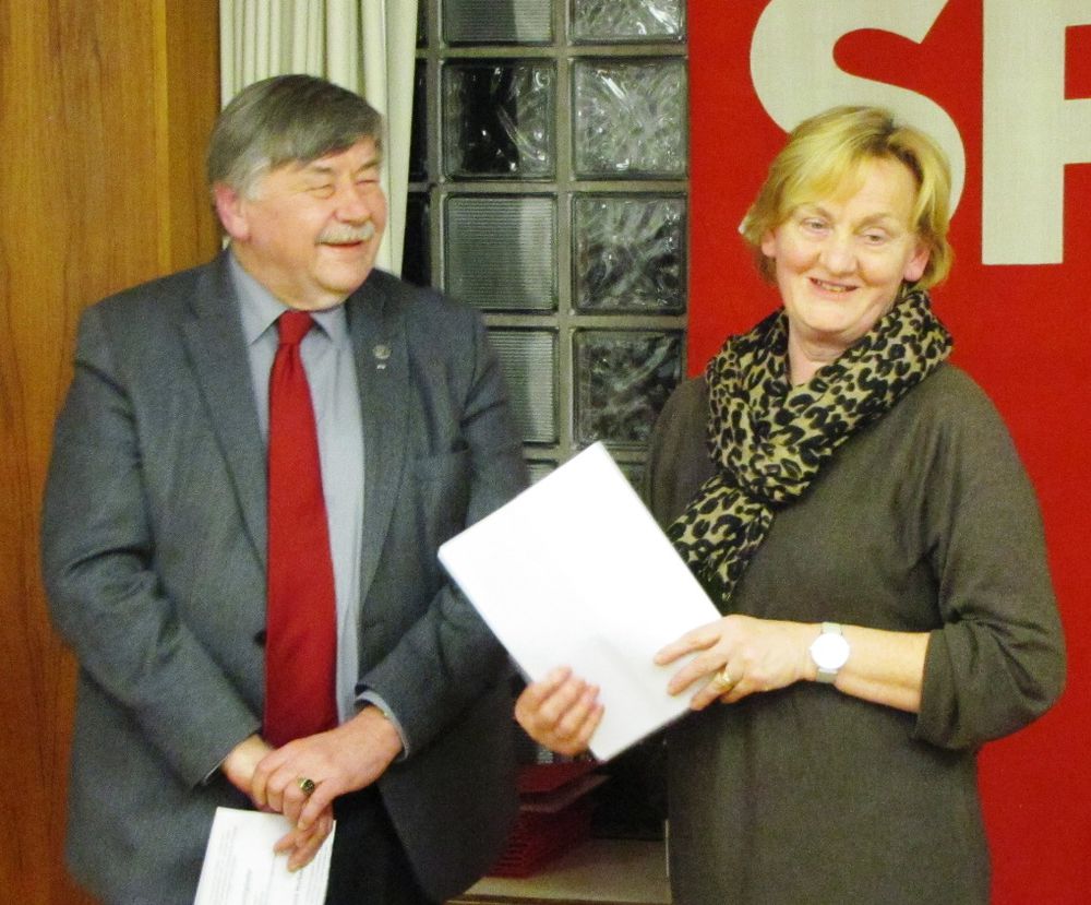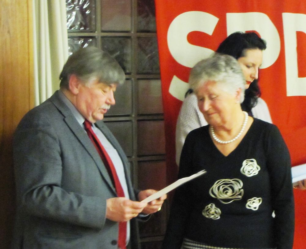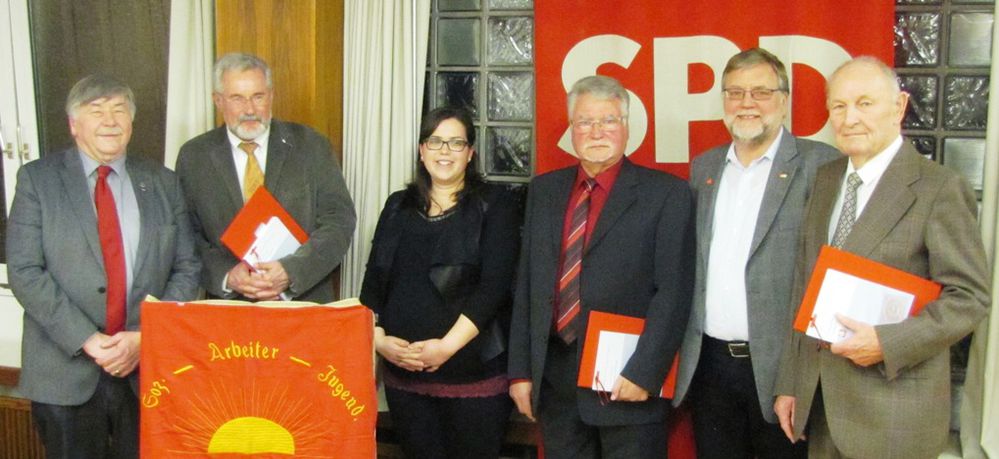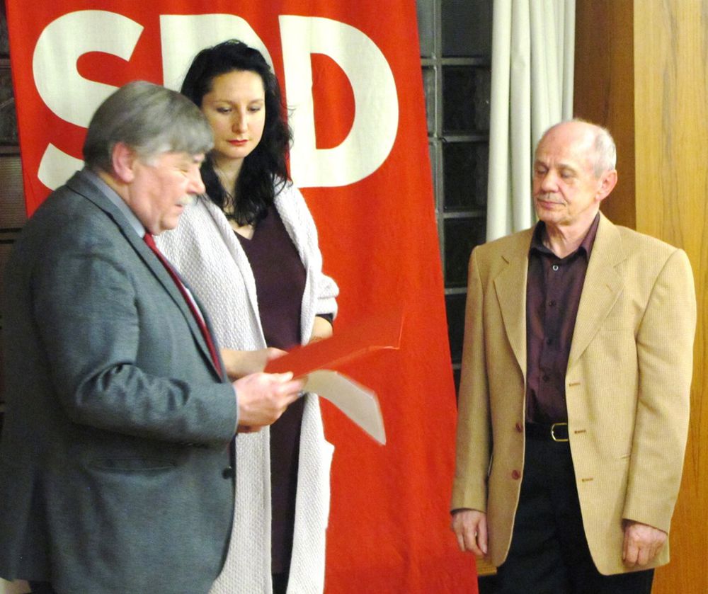 Der SPD-Ortsverein bedankt sich für langjährige Treue zur Sozialdemokratie bei folgenden Mitgliedern (in Klammer die Jahre der Mitgliedschaft): Friedrich Adler (55), Herbert Heidenmann (50), Horst Boger (45), Werner Lösch (45), Paul Schmitz (45), Hermann Setzer (45), Evelyn Rennebeck (35), Monika Hugel (35), Veronika Bross (35), Bernhard Heise (35), Bruno Schulz (30), Karsten Remien (30), Christian Vahlenbreder (25), Hermann Schon (25).