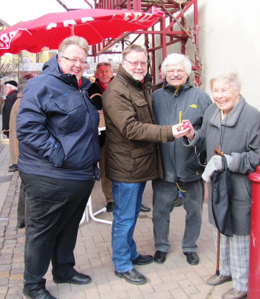 Zusammen mit unserem Bundestagsabgeordneten Gustav Herzog verteilten wir am Ostersamstag in der Fußgängerzone und am Marktplatz rote Ostereier von der SPD. Die Stimmung war gut, trotz winterlichen Temperaturen.