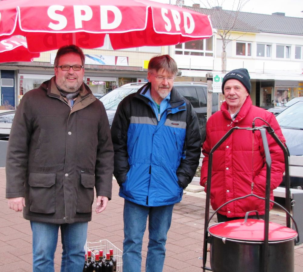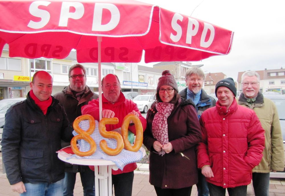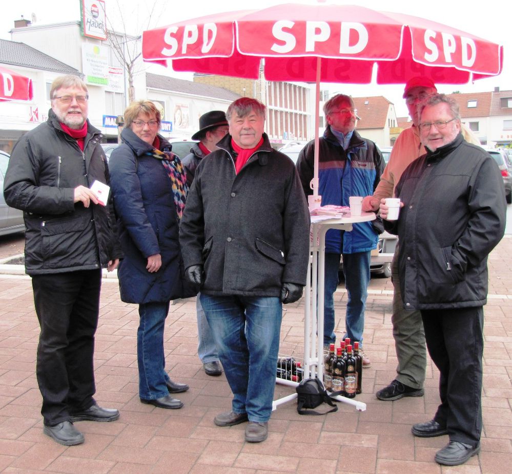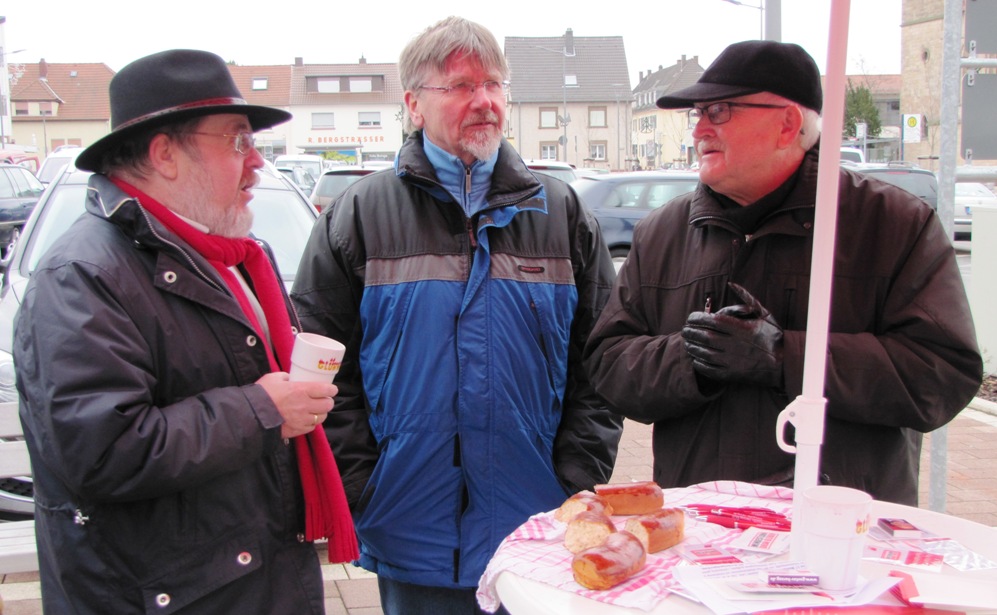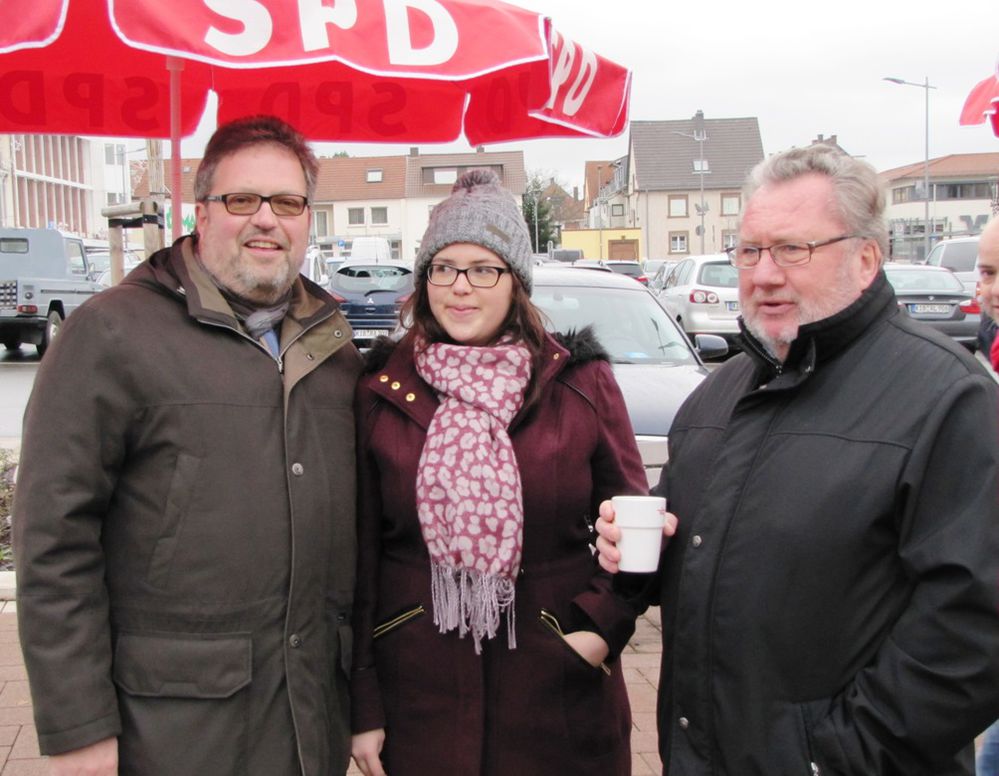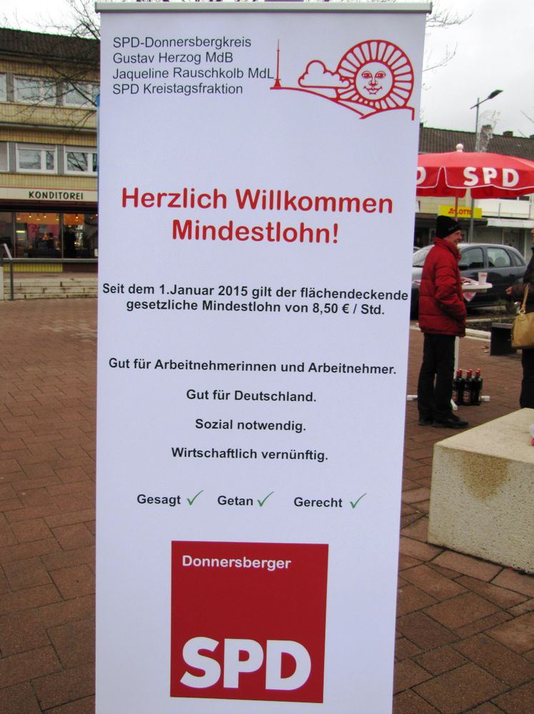 Mit einem Infostand auf dem Marktplatz informierten SPD-Mitglieder aus Eisenberg und Kerzenheim zu Beginn des Jahres über die Einführung des flächendeckenden Mindestlohnes. Mit dabei waren Gustav Herzog MdB, Jaqueline Rauschkolb MdL und Landrat Winfried Werner.