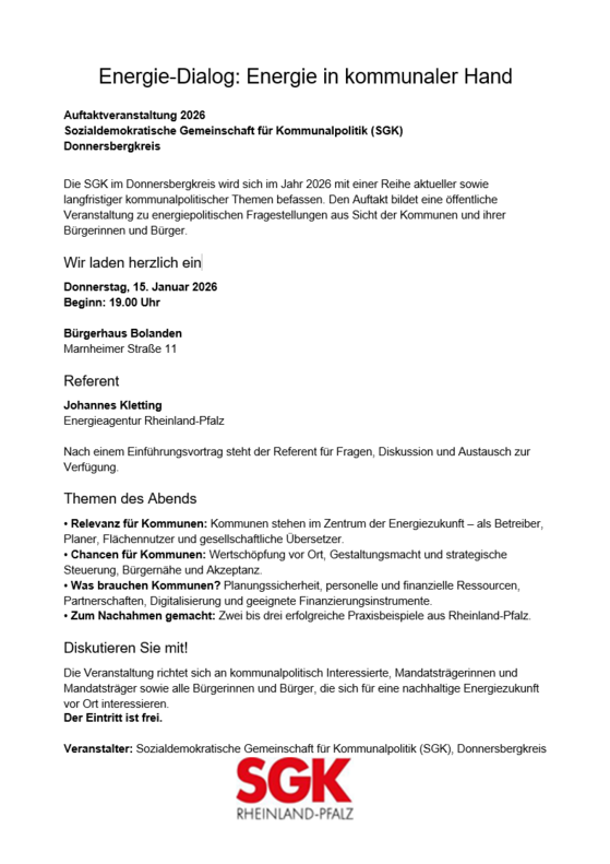 Entwürfe können bis zum 30. Oktober 2025 per Post an das Wahlkreisbüro Jaqueline Rauschkolb, Bahnhofstr. 3a, 67806 Rockenhausen eingereicht werden. Mit dem Einsenden wird gleichzeitig das Einverständnis zur Veröffentlichung erteilt.